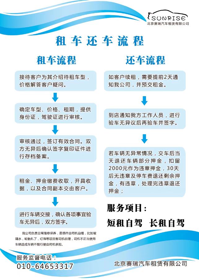 > 公司租车:营业执照副本、组织机构代码证书、公章、法人及经办人身份证、司机驾驶证、押金、租金。 > 国家机关,国内知名企业及注册资金500万以上的公司:营业执照副本、组织机构代码证书、公章、经办人身份证、司机驾驶证、押金、租金。 > 外企及驻京办事处:营业执照副本、组织机构代码证书、公章、首席代表或负责人身份证、经办人身份证、 驾驶执照、押金、租金。